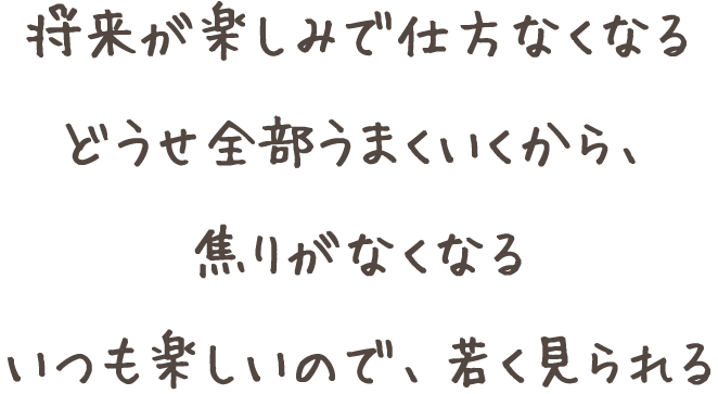 毎日楽しくて幸せしかない、そんな人生をつかんでもらいたい。